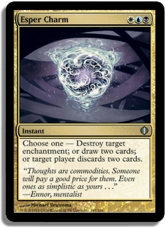 Choose one - Destroy target enchantment; or draw two cards; or target player discards two cards.