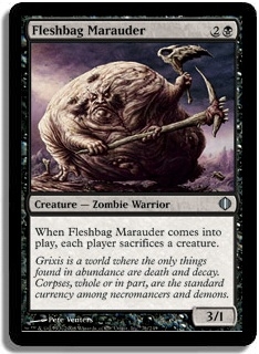When Fleshbag Marauder comes into play, each player sacrifices a creature.