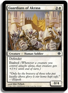 Defender Exalted (Whenever a creature you control attacks alone, that creature gets +1/+1 until end of turn.)