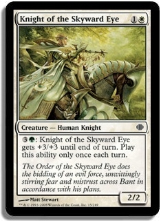 3G: Knight of the Skyward Eye gets +3/+3 until end of turn. Play this ability only once each turn.
