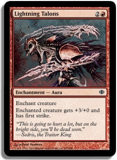 Enchant creature Enchanted creature gets +3/+0 and has first strike.