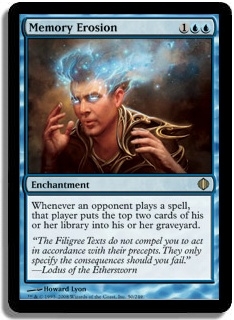 Whenever an opponent plays a spell, that player puts the top two cards of his or her library into his or her graveyard.