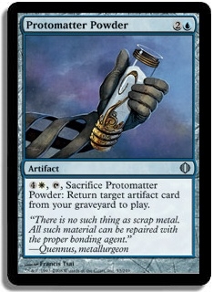 4W, T, Sacrifice Protomatter Powder: Return target artifact card from your graveyard to play.