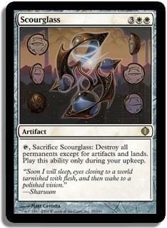 T, Sacrifice Scourglass: Destroy all permanents except for artifacts and lands. Play this ability only during your upkeep.