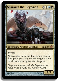 Flying When Sharuum the Hegemon comes into play, you may return target artifact card from your graveyard to play.
