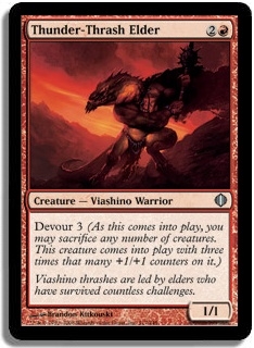 Devour 3 (As this comes into play, you may sacrifice any number of creatures. This creature comes into play with three times that many +1/+1 counters on it.)