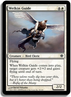 Flying When Welkin Guide comes into play, target creature gets +2/+2 and gains flying until end of turn.