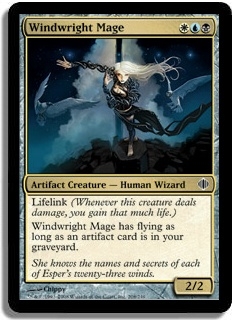 Lifelink (Whenever this creature deals damage, you gain that much life.) Windwright Mage has flying as long as an artifact card is in your graveyard.