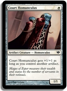 Court Homunculus gets +1/+1 as long as you control another artifact.