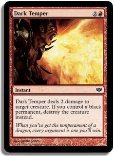 Dark Temper deals 2 damage to target creature. If you control a black permanent, destroy the creature instead.