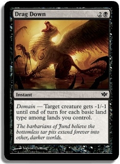Domain - Target creature gets -1/-1 until end of turn for each basic land type among lands you control.
