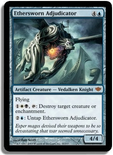 Flying 1WB, T Destroy target creature or enchantment. 2U: Untap Ethersworn Adjudicator.