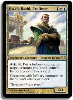 WU, T Put a bribery counter on target creature you don't control. Its controller draws a card. Creatures with bribery counters on them can't attack or block.
