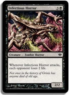 Whenever Infectious Horror attacks, each opponent loses 2 life.