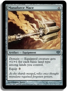Domain - Equipped creature gets +1/+1 for each basic land type among lands you control. Equip 3