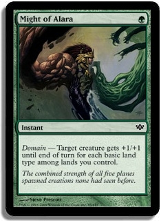 Domain - Target creature gets +1/+1 until end of turn for each basic land type among lands you control.