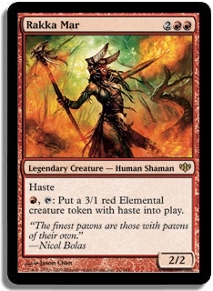 Haste R, T Put a 3/1 red Elemental creature token with haste into play.