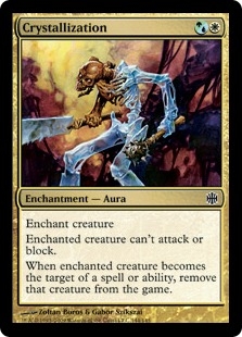 Enchant creature Enchanted creature can't attack or block. When enchanted creature becomes the target of a spell or ability, remove that creature from the game.