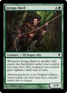 Whenever Joraga Bard or another Ally enters the battlefield under your control, you may have Ally creatures you control gain vigilance until end of turn.