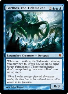 Whenever Lorthos, the Tidemaker attacks, you may pay {8}. If you do, tap up to eight target permanents. Those permanents don't untap during their controllers' next untap steps.