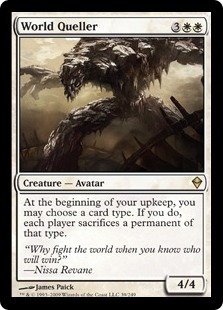 At the beginning of your upkeep, you may choose a card type. If you do, each player sacrifices a permanent of that type.