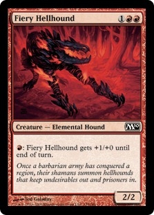 {R}: Fiery Hellhound gets +1/+0 until end of turn.