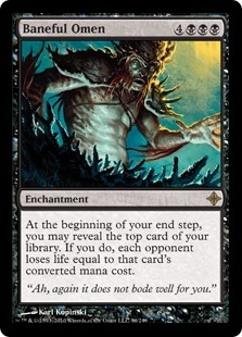 At the beginning of your end step, you may reveal the top card of your library. If you do, each opponent loses life equal to that card's converted mana cost.