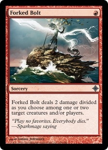 Forked Bolt deals 2 damage divided as you choose among one or two target creatures and/or players.