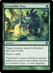 Target creature must be blocked this turn if able. Draw a card.