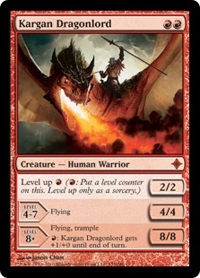 Level up R (R: Put a level counter on this. Level up only as a sorcery.) LEVEL 4-7 4/4 Flying LEVEL 8+ 8/8 Flying, trample R: Kargan Dragonlord gets +1/+0 until end of turn.