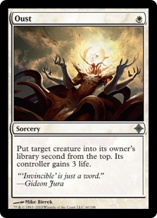 Put target creature into its owner's library second from the top. Its controller gains 3 life.