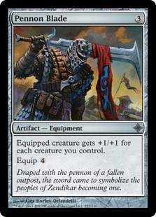 Draped with the pennon of a fallen outpost, the sword came to symbolize the peoples of Zendikar becoming one.