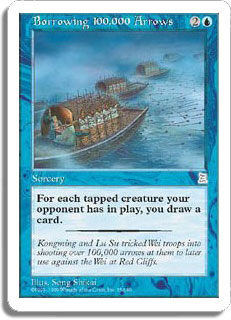 Kongming and Lu Su tricked Wei troops into shooting over 100,000 arrows at them to later use against the Wei at Red Cliffs.