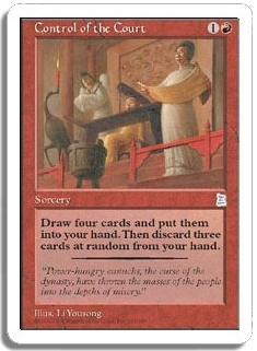 Draw four cards and put them into your hand. Then discard three cards at random from your hand.