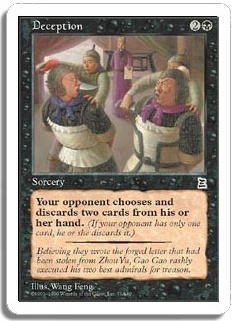 Your opponent chooses and discards two cards from his or her hand. (If your opponent has only one card, he or she discards it.)