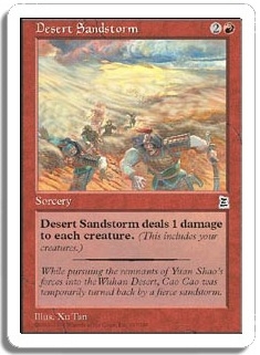 Desert Sandstorm deals 1 damage to each creature. (This includes your creatures.)