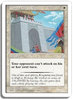 Out of time and options, Kongming was forced to bluff at Xicheng. He tricked an army of 150,000 Wei by leaving the city gates open and calmly playing the zither.