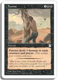 Famine deals 3 damage to each creature and player. (This includes your creatures and you.)