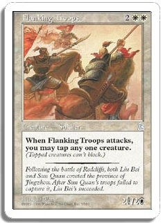When Flanking Troops attacks, you may tap any one creature. (Tapped creatures can't block.)