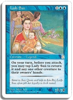 On your turn, before you attack, you may tap Lady Sun to return it and any one other creature to their owners' hands.