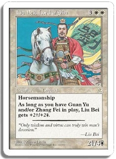 Horsemanship. As long as you have Guan Yu and/or Zhang Fei in play, Liu Bei gets +2/+2.