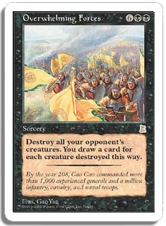 Destroy all your opponent's creatures. You draw a card for each creature destroyed this way.