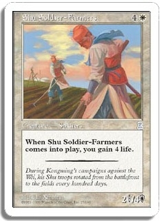 When Shu Soldier-Farmers comes into play, you gain 4 life.