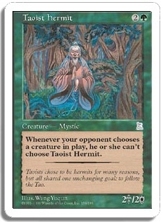 Whenever your opponent chooses a creature in play, he or she can't choose Taoist Hermit.