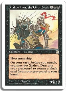 On your turn, before you attack, you may put Xiahou Dun into your graveyard to return a black card from your graveyard to your hand.