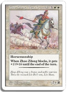 Horsemanship. When Zhao Zilong blocks, it gets +1/+1 until the end of the turn.