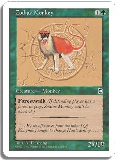 Forestwalk (If defending player has a forest in play, Zodiac Monkey can't be blocked.)