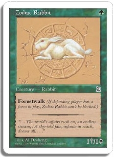 Forestwalk (If defending player has a forest in play, Zodiac Rabbit can't be blocked.)