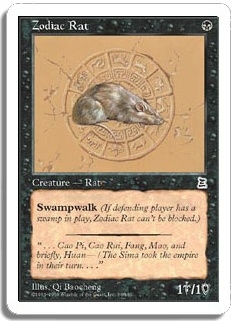 Swampwalk (If defending player has a swamp in play, Zodiac Rat can't be blocked.)