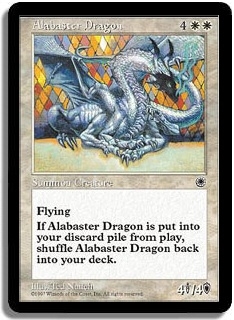 Flying If Alabaster Dragon is put into any graveyard from play, shuffle Alabaster Dragon into its owner's library.
